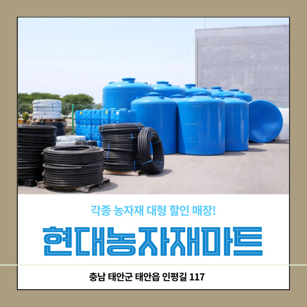충남 태안에 위치한 현대농자재마트는 농약과 비료, 각종 농기구, 하우스자재, 조경자재 등 농사에 필요한 다양하고 좋은 품질의 상품들을 보다 저렴한 가격으로 구매할 수 있는 하우스자재 및 농자재 판매 전문업체입니다. 농약과 퇴비를 비롯하여 토양개량제, 토양소독제, 동물방지망, 닭·염소망, 제초매트 등 다양한 농자재들을 판매하고 있으며, 이와 더불어, 농기계와 원예자재, 관수자재, 전기자재까지 농사에 도움이 되는 제품들을 구비하고 있습니다. 다양한 농업 자재들과 함께 삽, 호미, 망치,드라이버와 같은 철물 및 공구부터 전기톱과 전동가위, 예초기, 엔진톱, 콤프레샤 같은 전동공구와 전동기계까지 합리적인 가격으로 판매하고 있으며, 태안사랑상품권도 사용 가능합니다.